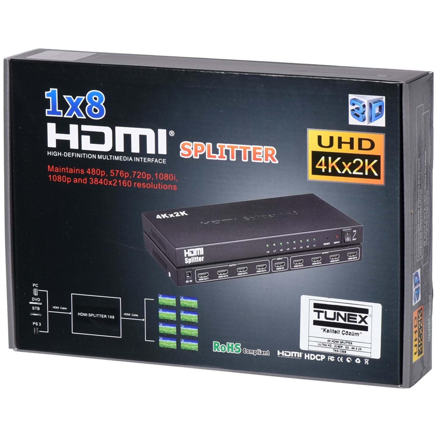 TUNEX 8'Li 4K Hdmı Splitter TNX-1008