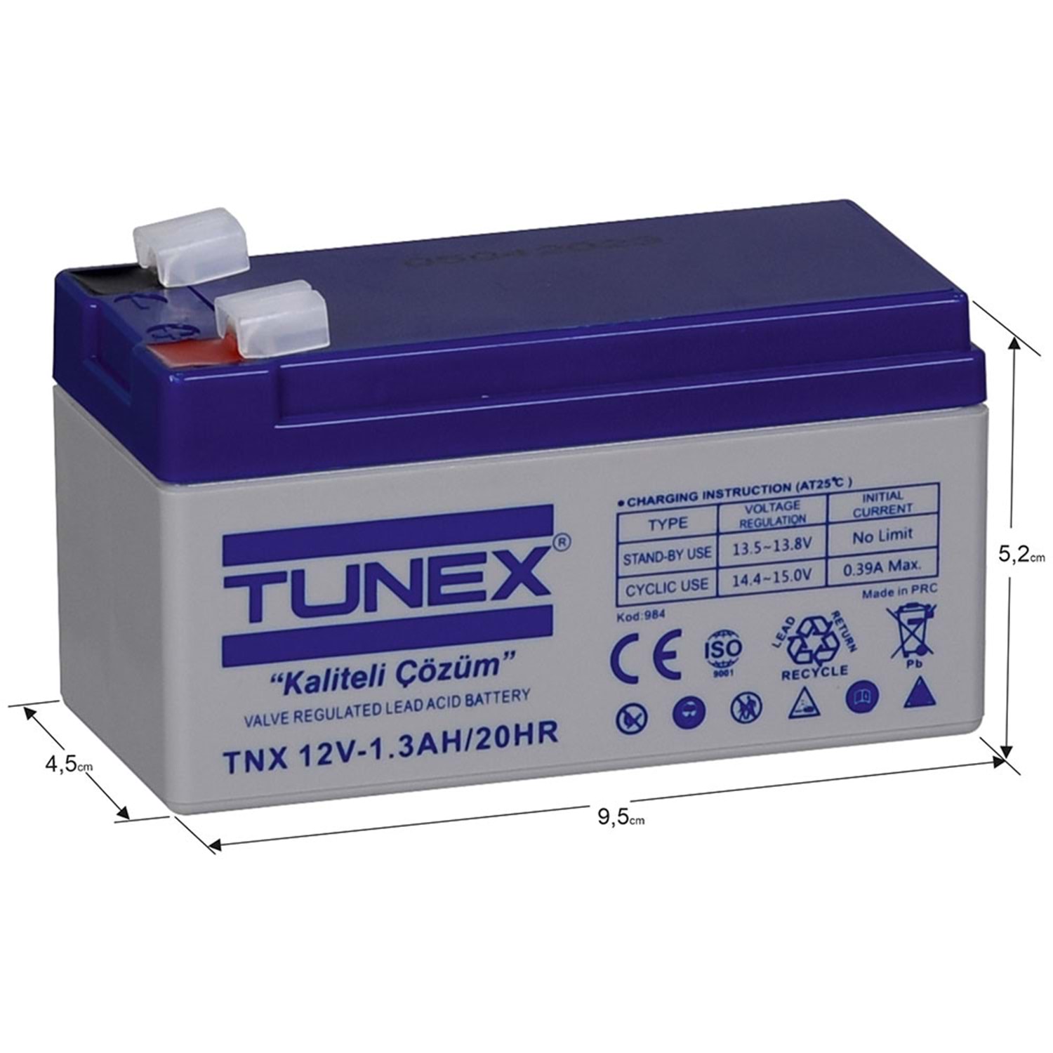 TUNEX 12V 1,3A Gri-Mavi Kuru Bakımsız Akü TNX-12V1,3A