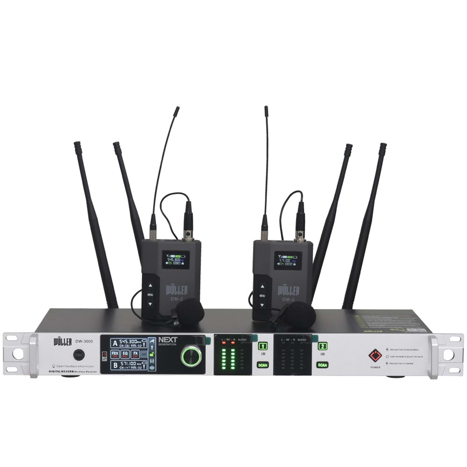 WÖLLER Çift Kanal 2 Yaka Kablosuz True Diversity UHF Kablosuz Mikrofon DW-3000 YY