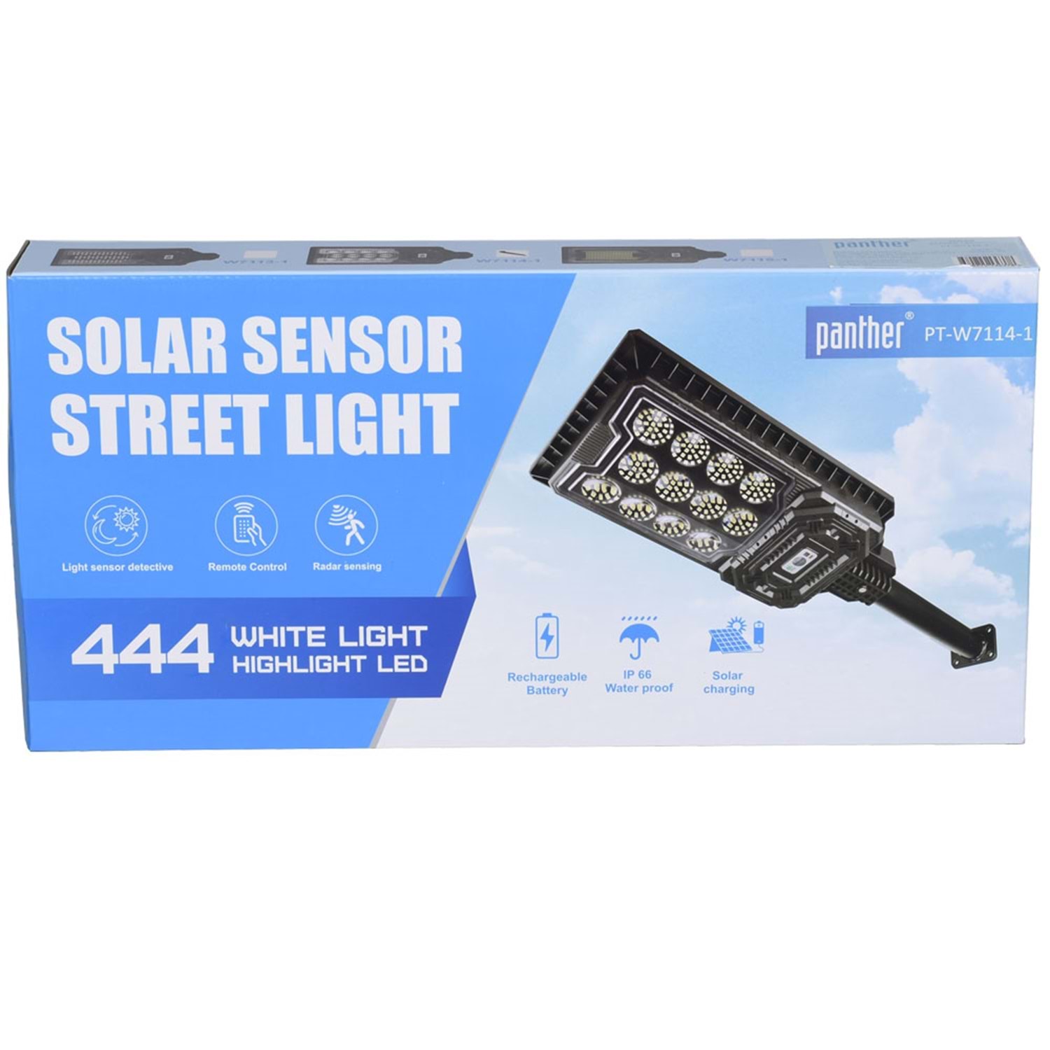 PANTHER IP-66 Sensörlü Kumandalı Solar şarjlı Ledli Sokak Lambası PT-W7114-2